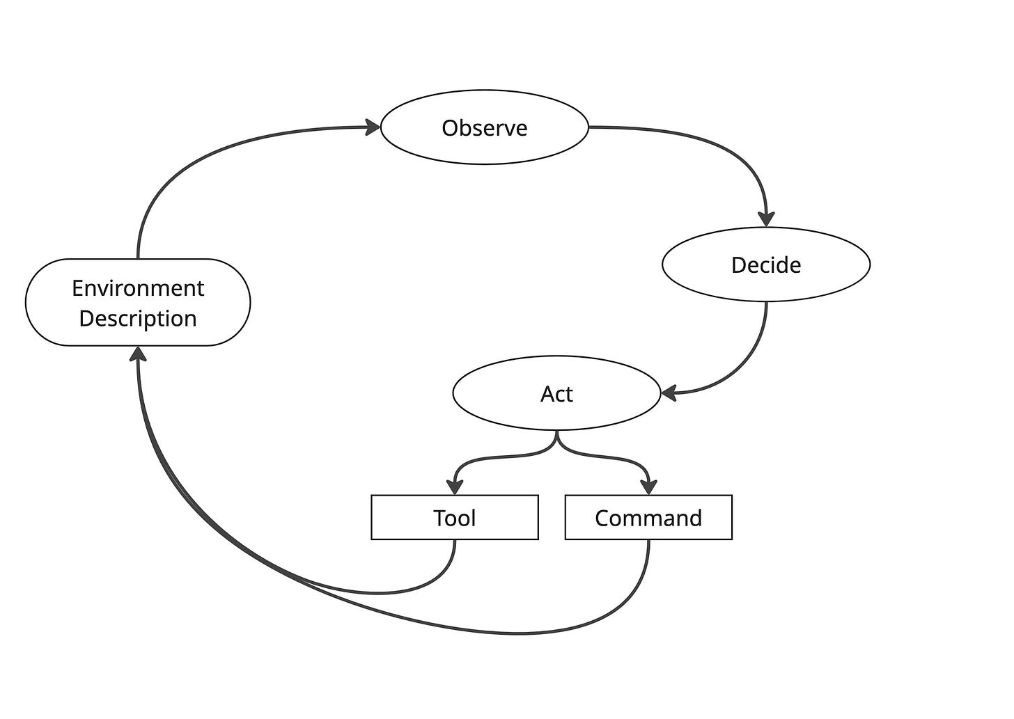 Act: Issue a command or invoke a tool (e.g., move, look, use item, talk to NPC).